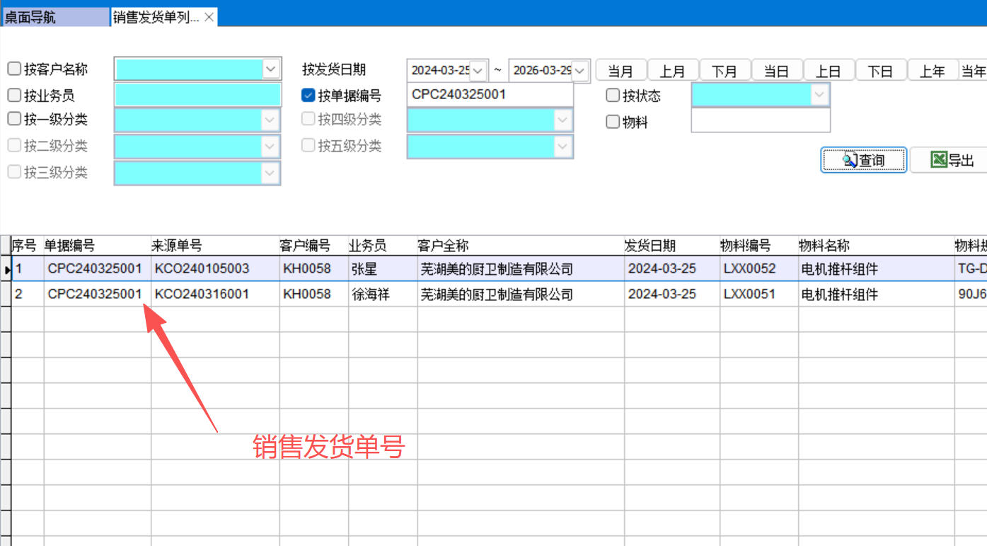 按單據(jù)編號(hào)查詢,這里的單據(jù)編號(hào)指銷售發(fā)貨單號(hào)