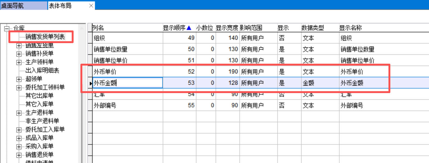 如果客戶訂單是美元訂單,在銷售發(fā)貨單列表可以顯示外幣單價(jià)、外幣金額