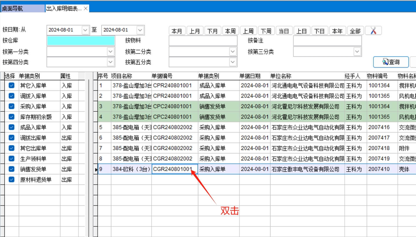 在單據(jù)編號(hào)上雙擊可以打開該單據(jù)