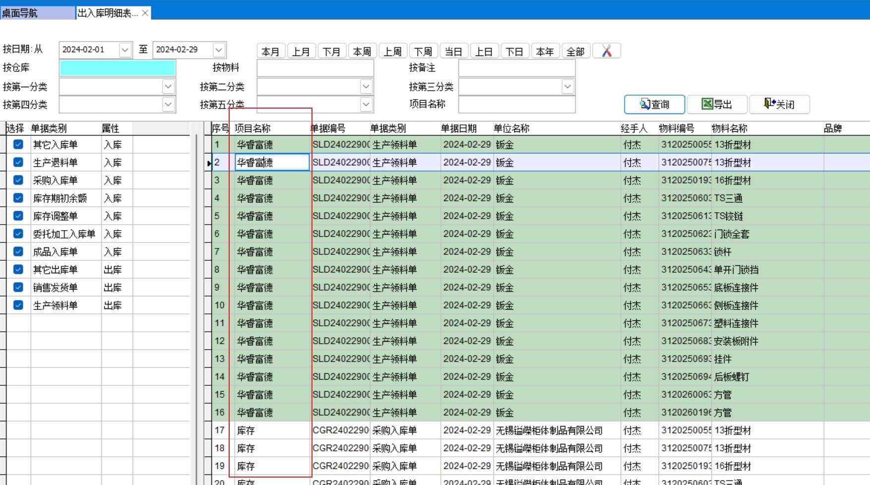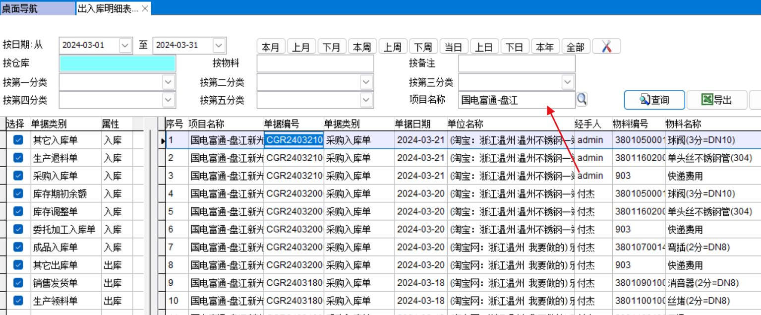 所以出入庫(kù)明細(xì)表需要能按項(xiàng)目名稱查詢