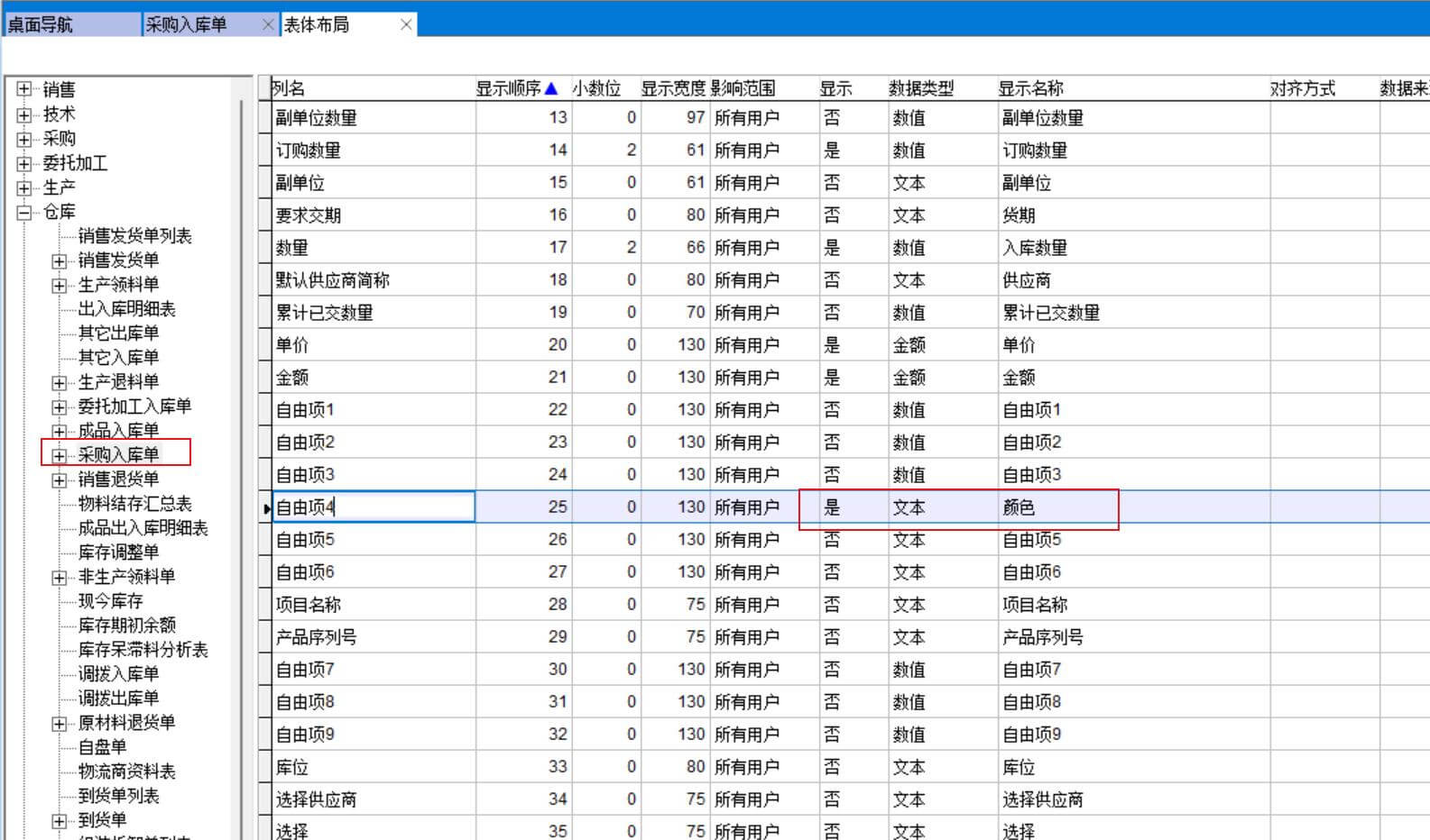 自由項(xiàng)就是讓用戶自己定義一個(gè)屬性,讓ERP系統(tǒng)更符合客戶實(shí)際需要。