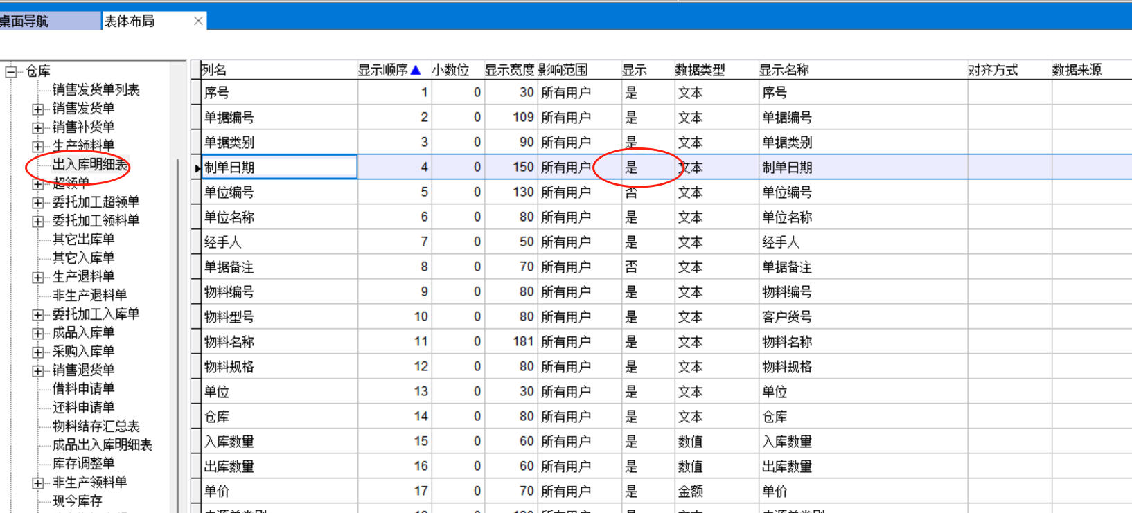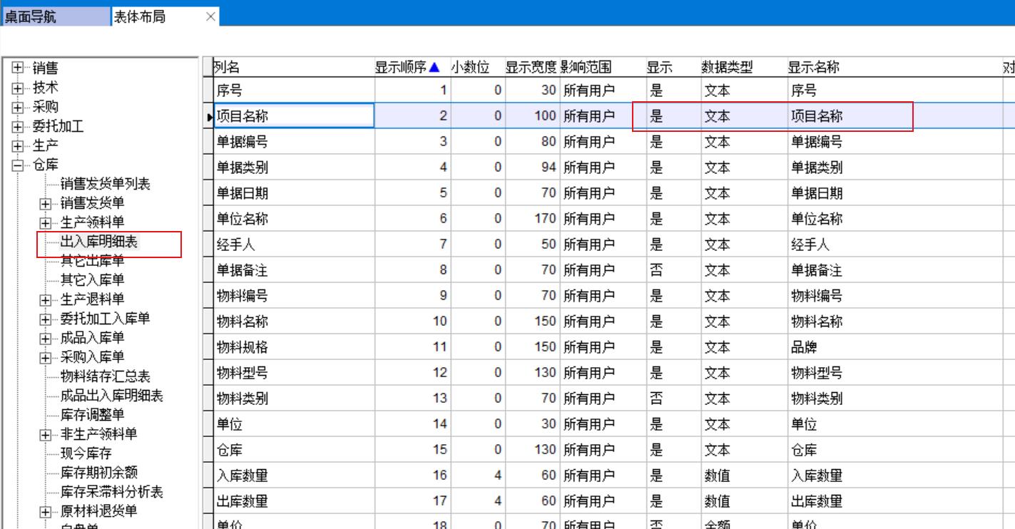 表體布局就是表格內(nèi)顯示列的設(shè)置