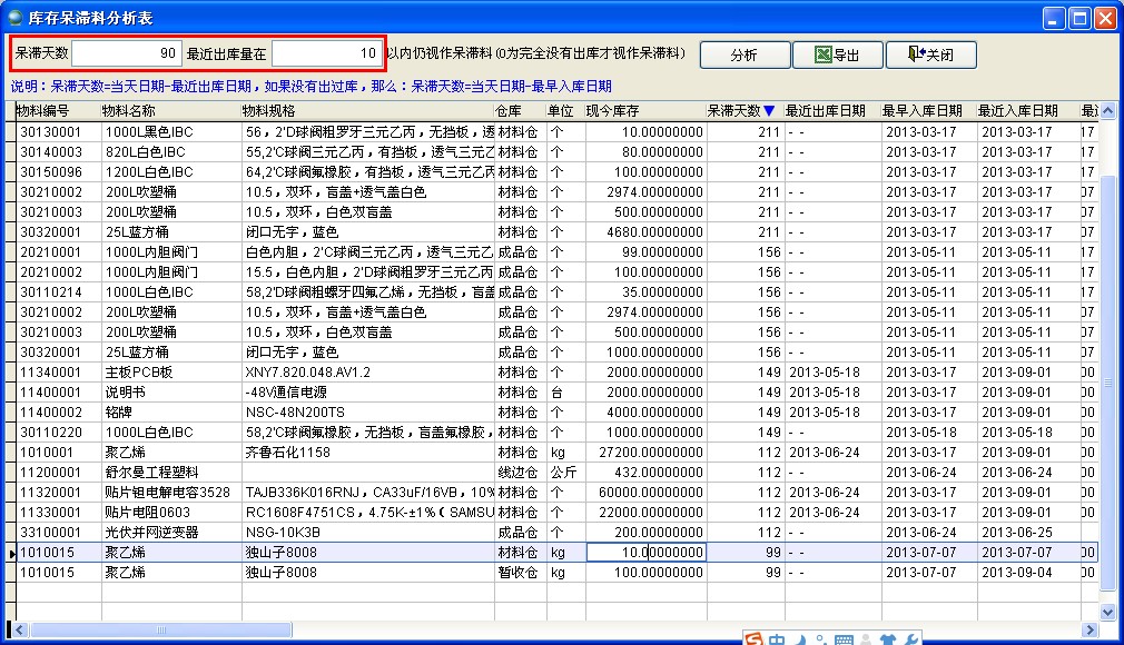 1、先設(shè)置呆滯天數(shù)90天,表示在倉庫存放時(shí)間超過90天為呆滯料。