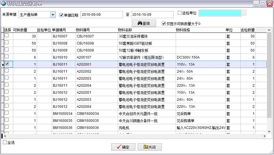 打開路徑:主菜單->質(zhì)量->成品送檢單->成品送檢單