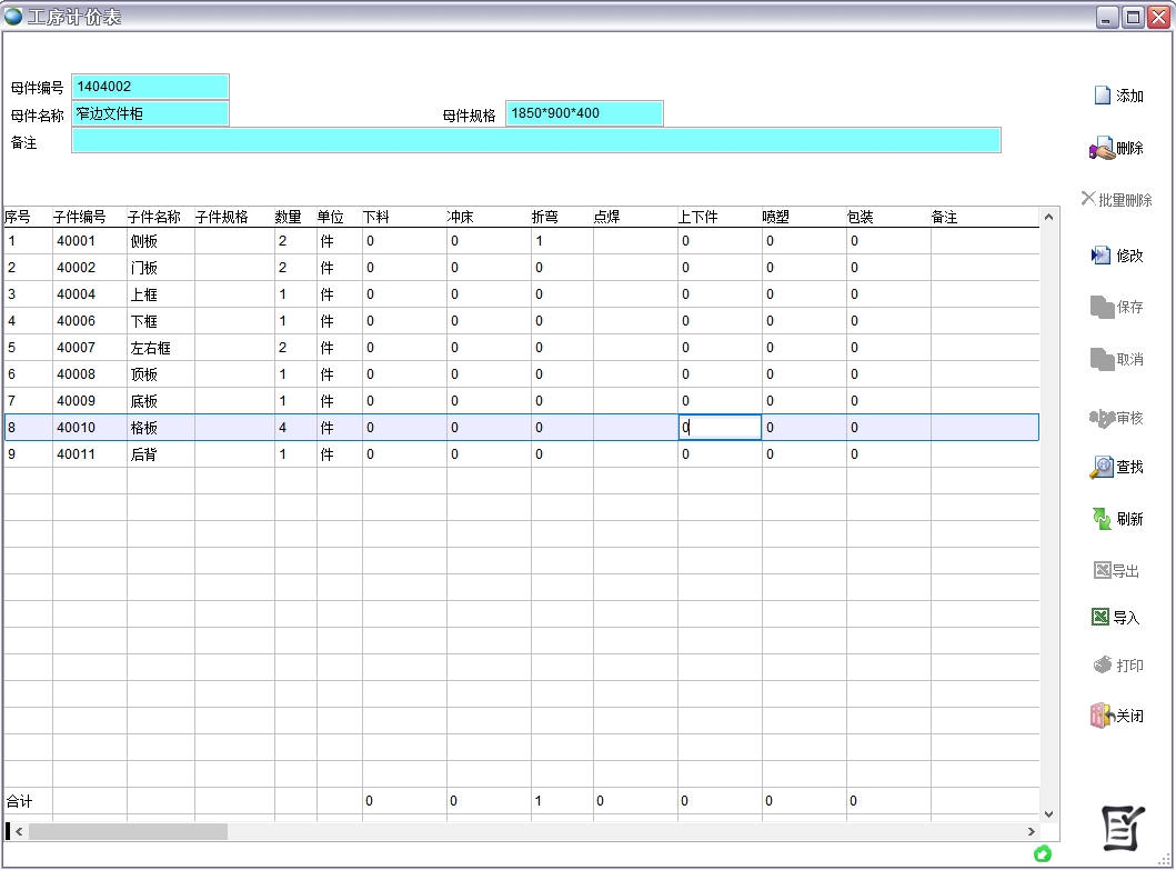 b、工序計價表