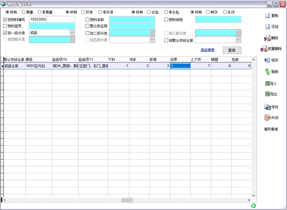 c、物料編碼表