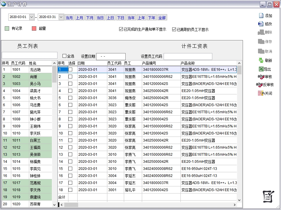 2、生產(chǎn)計件