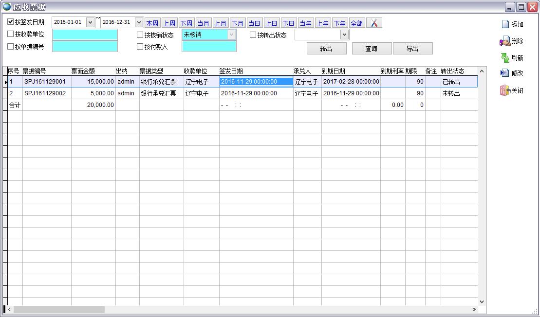 打開路徑:【主菜單】->【應(yīng)收應(yīng)付】-> 【應(yīng)收】 -> 【應(yīng)收票據(jù)】
