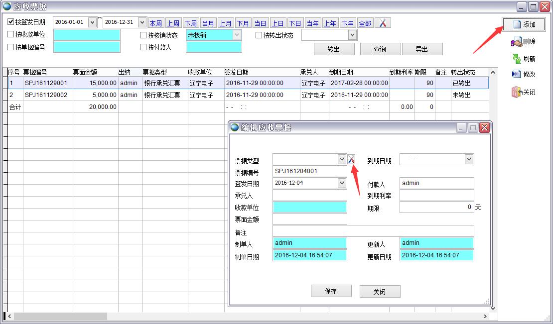 用戶可以自己添加票據(jù)類型 到期日期
