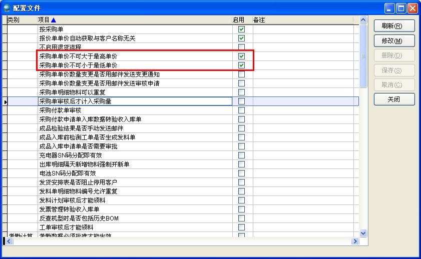 要實現(xiàn)價格控制,首先在【系統(tǒng)管理】->【配置文件】中勾選下述選項,如圖所示:
