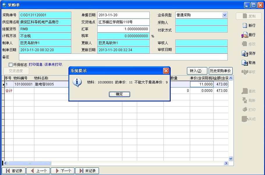 有時候為了實現(xiàn)控制采購員的采購行為,需要對采購物料進行價格限制。