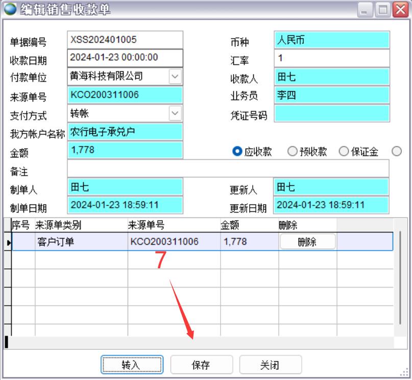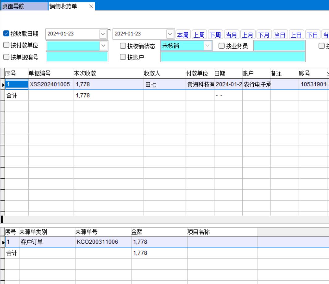打開路徑:【主菜單】->【應(yīng)收應(yīng)付】 -> 【應(yīng)收】 -> 【銷售收款單】