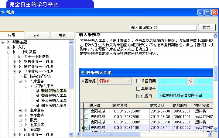 由于人員流動導致ERP操作技能的丟失是企業(yè)普遍面臨的問題,如何讓新員工盡快投入工作對于中小企業(yè)尤為重要。 巨靈鳥5000被設計為一款讓用戶自主實施的ERP,無需廠家實施顧問的指導,操作者能通過自學掌握操作,從而大大減少ERP實施成本。 |