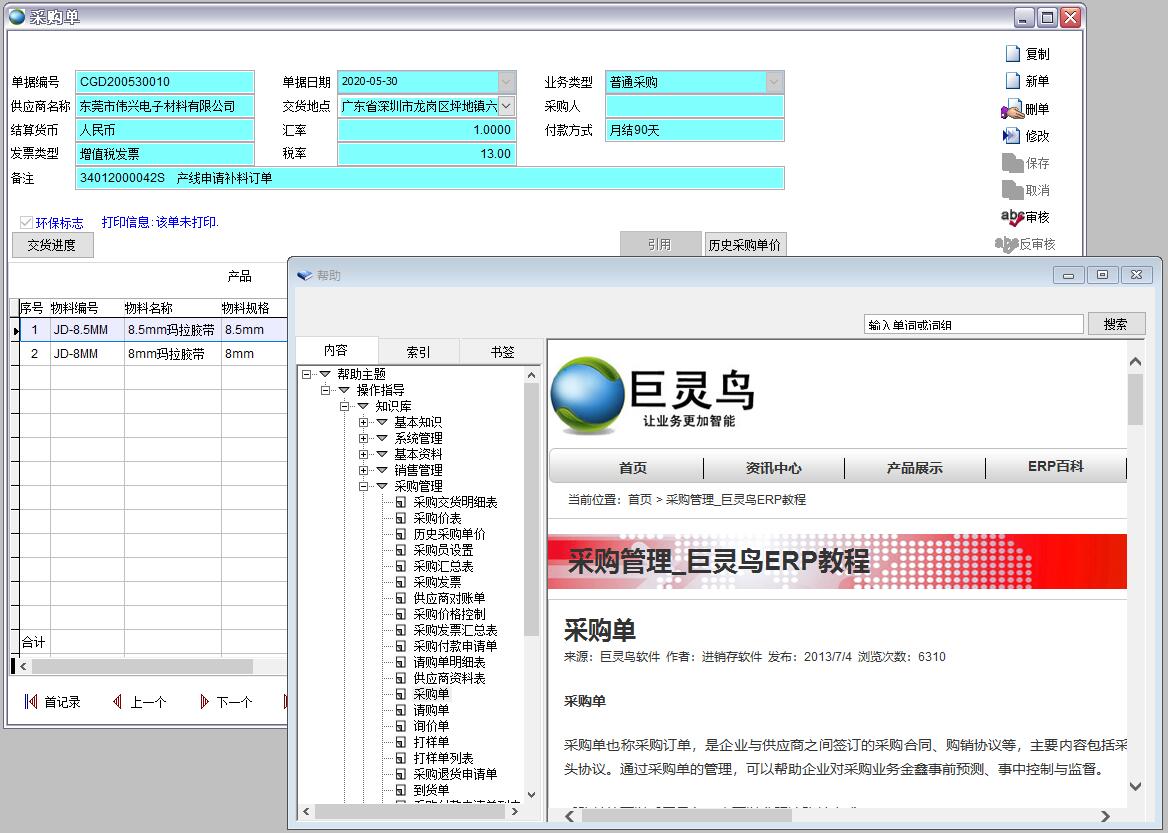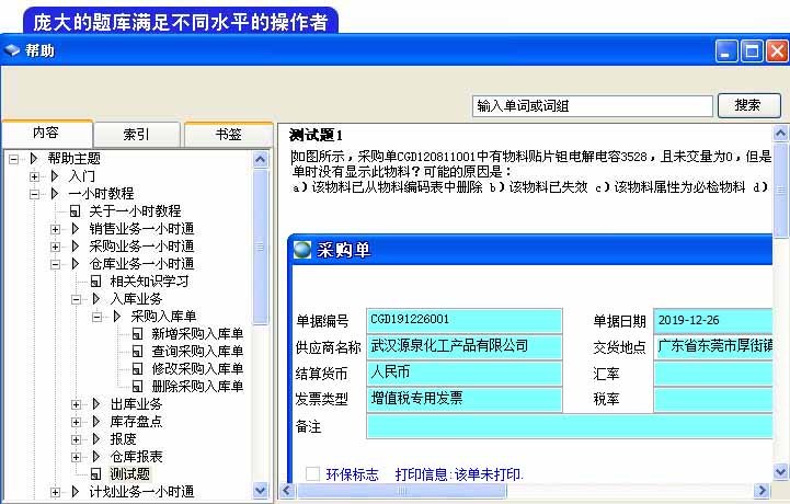 在任意一個單據(jù)上按F1鍵即可打開該單據(jù)的在線幫助文件