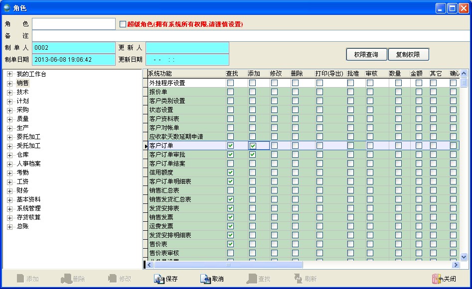 系統(tǒng)內置的角色權限可減少用戶權限設置的時間