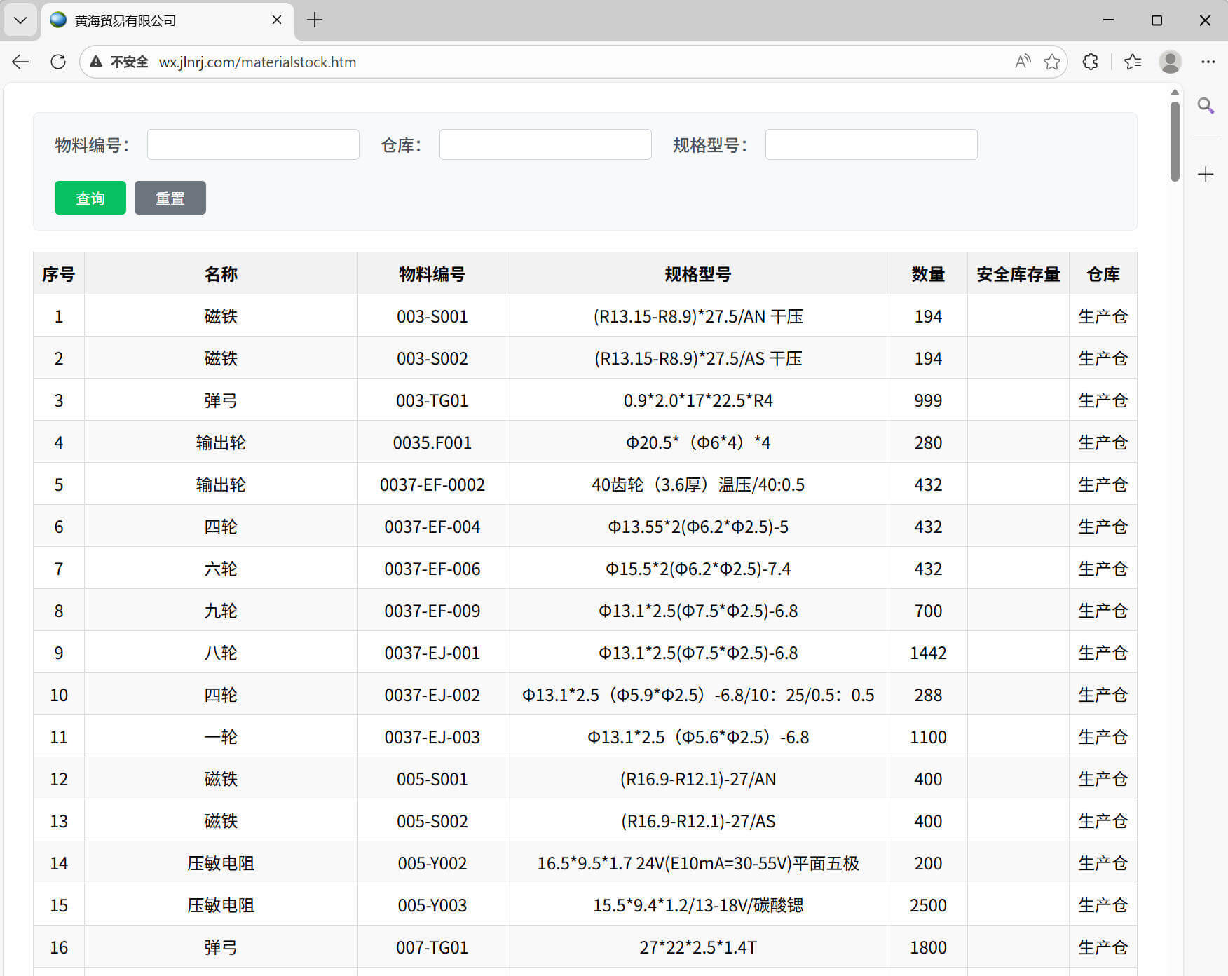 體驗(yàn)地址:http://wx.jlnrj.com/materialstock.htm