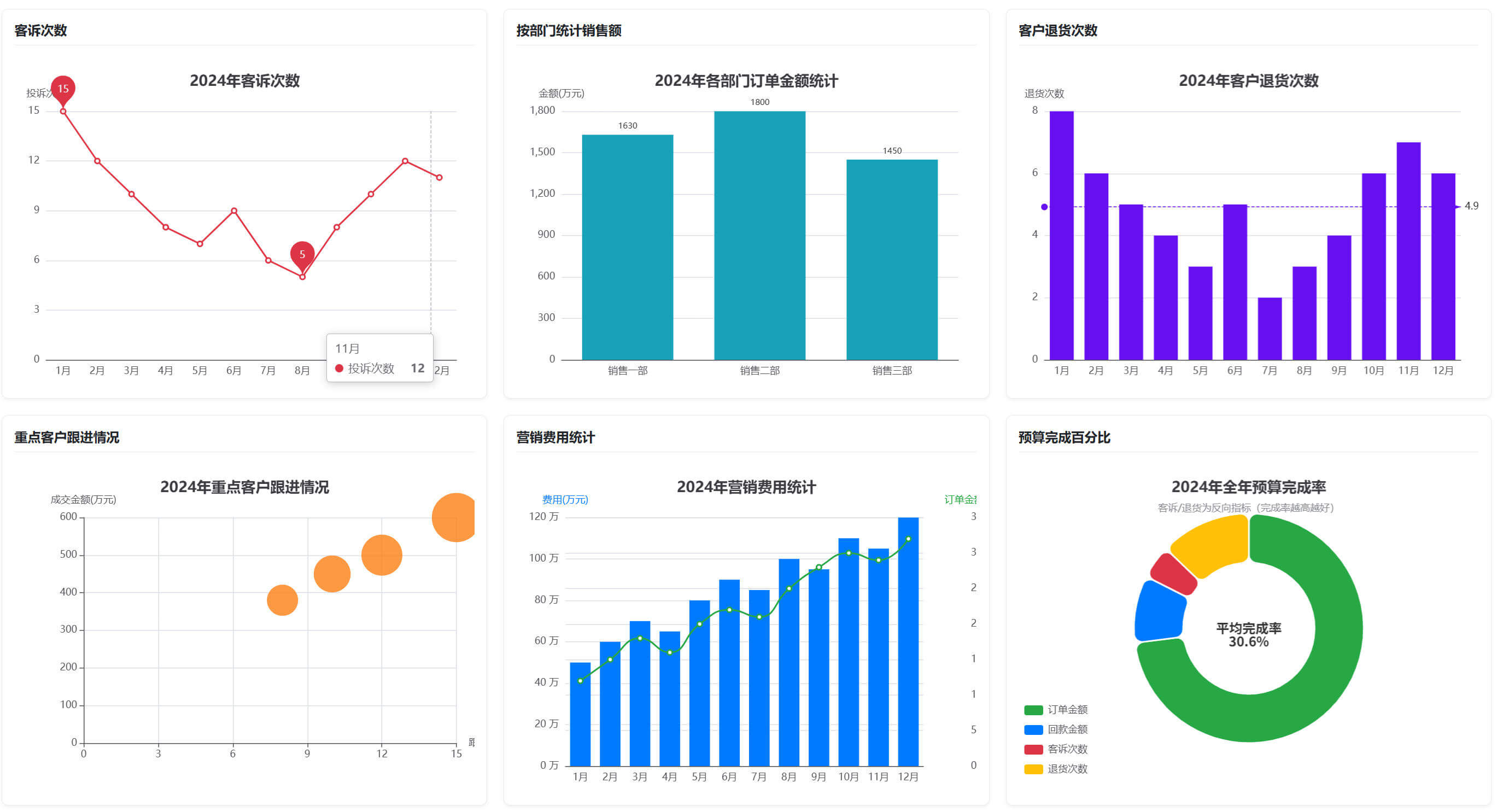 適用于年度、月度總結(jié),對(duì)數(shù)據(jù)多維度分析,幫助企業(yè)決策分析
