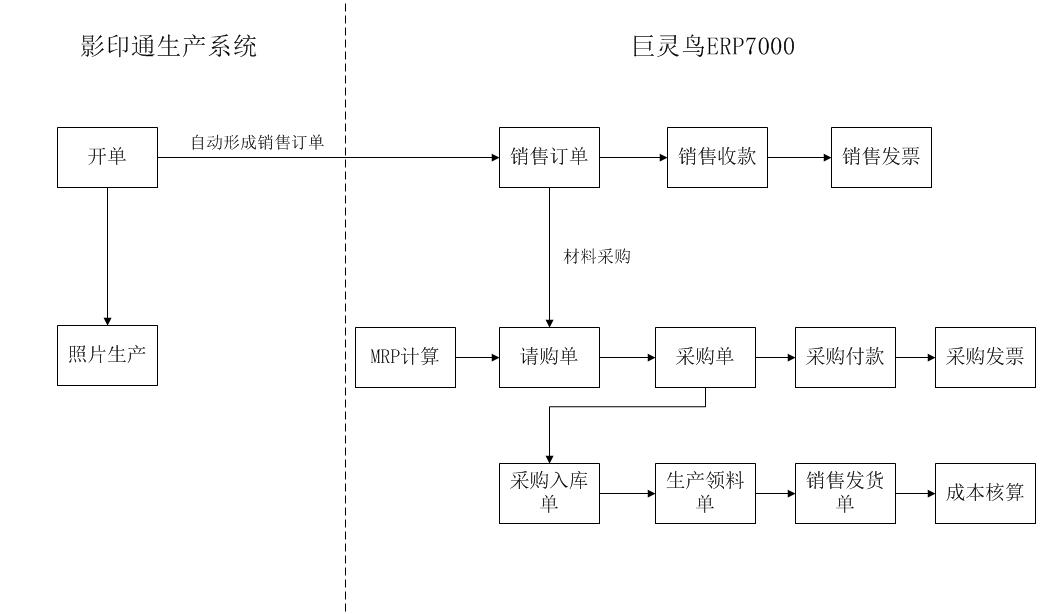 影印通生產(chǎn)系統(tǒng)可以單獨(dú)使用,也可以和巨靈鳥ERP無縫集成